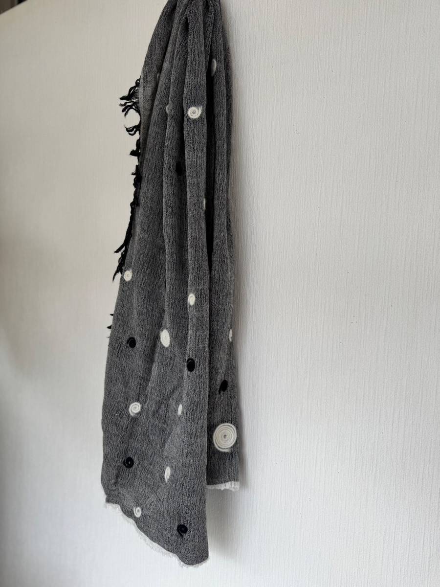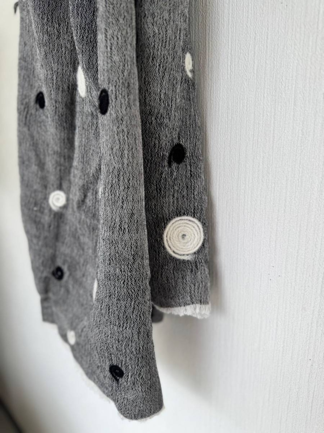 モノトーンの渦巻き模様を一つ一つニードル加工で取り付けました。