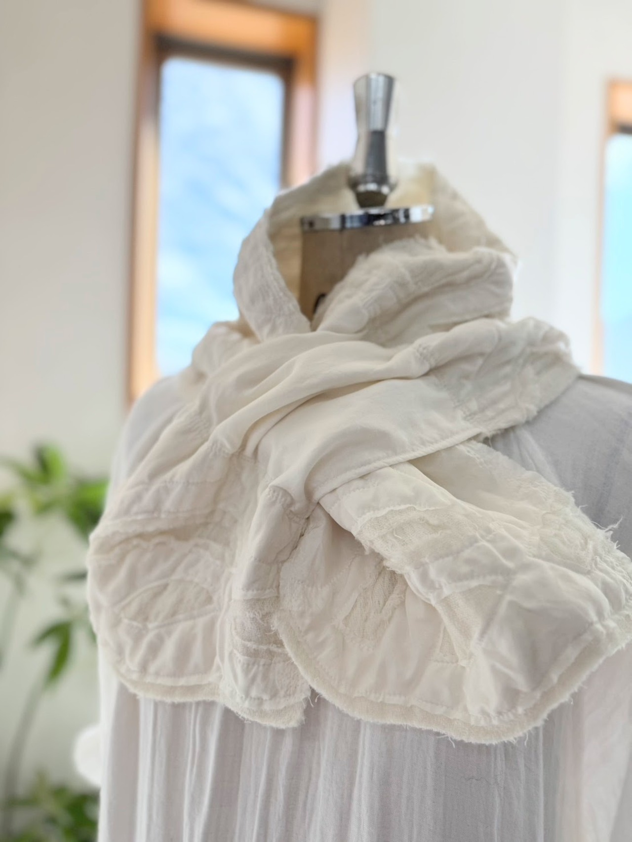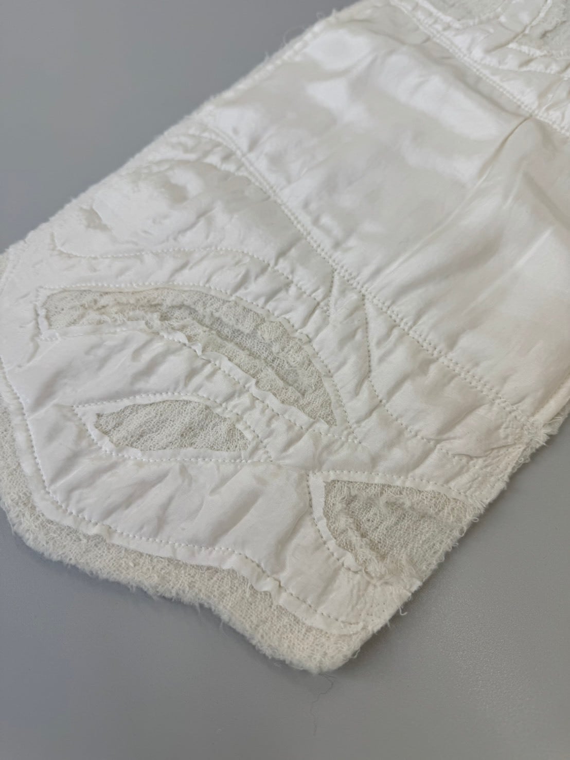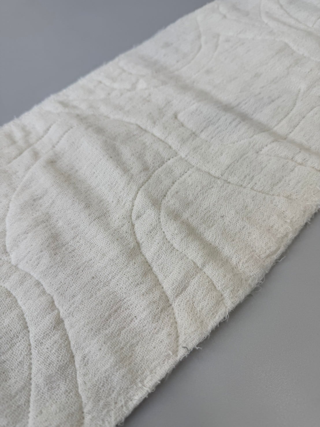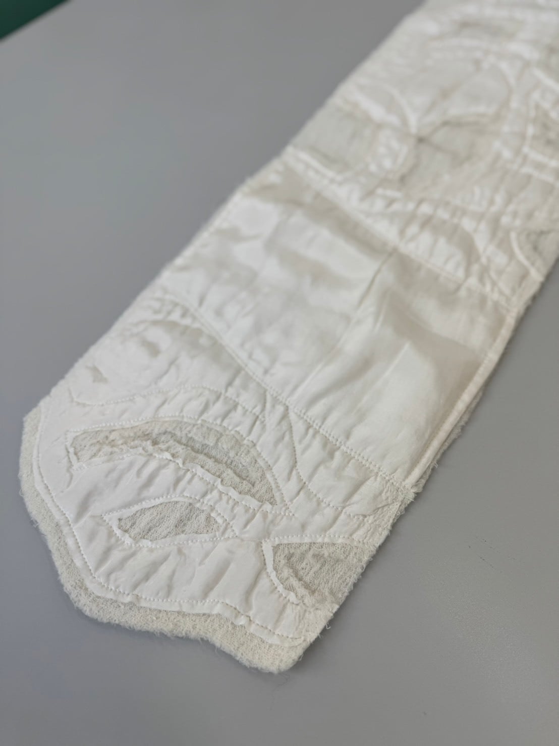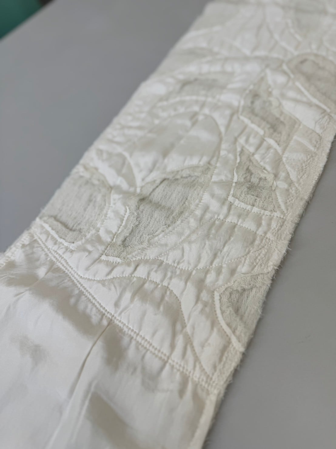 一番上にシルク100%の生地を乗せ、ハンドミシンで模様をステッチし、